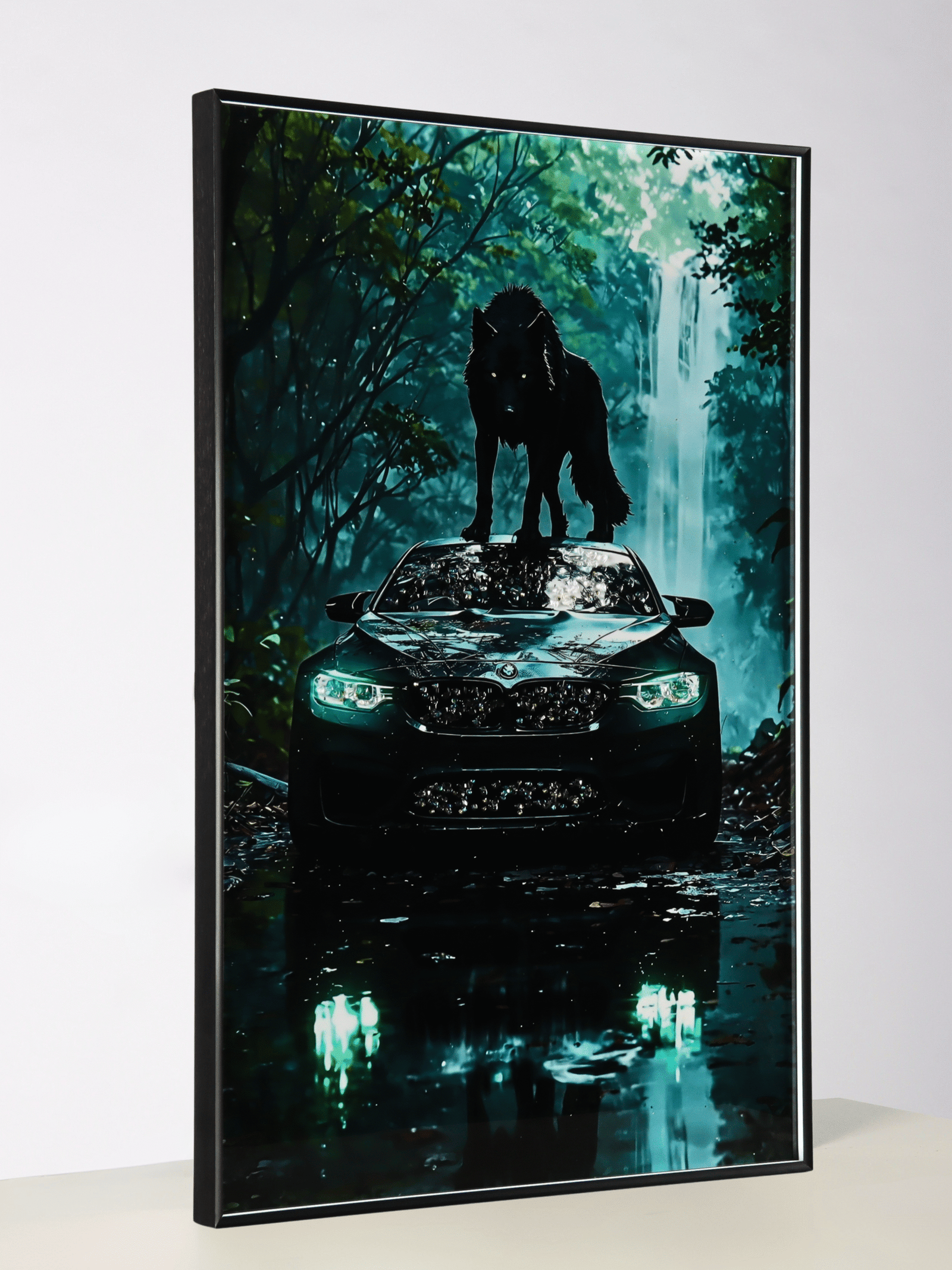 اختبر المعنى الحقيقي للهيبة مع لوحة “سيادةُ النمر”، العمل الفني الذي يدمج وحشية الطبيعة بأناقة الميكانيكا المعاصرة. في مشهد يفيض بالغموض والقوة، يتربع نمر أسود مهيب فوق سيارة رياضية فاخرة وسط غابة استوائية وشلالات منسابة، ليُعلن عن سيطرته المطلقة على المكان.