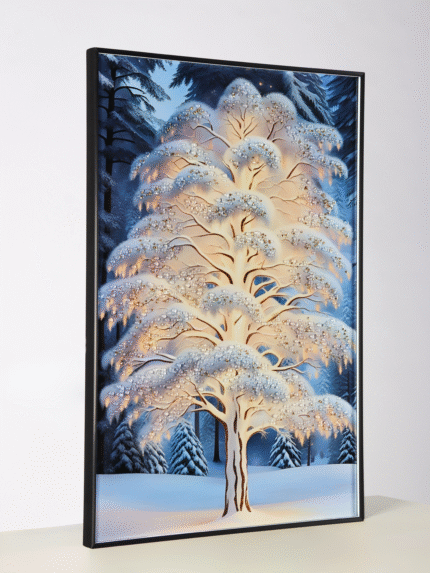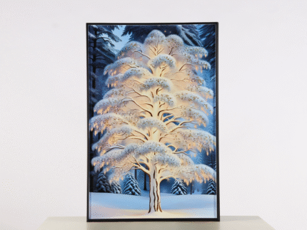 انعكاس مرآوي: تتميز اللوحة بتأثير الانعكاس السفلي الذي يعزز من عمق الصورة، وكأن القطعة الفنية تطفو في عالم من الأحلام الضوئية.